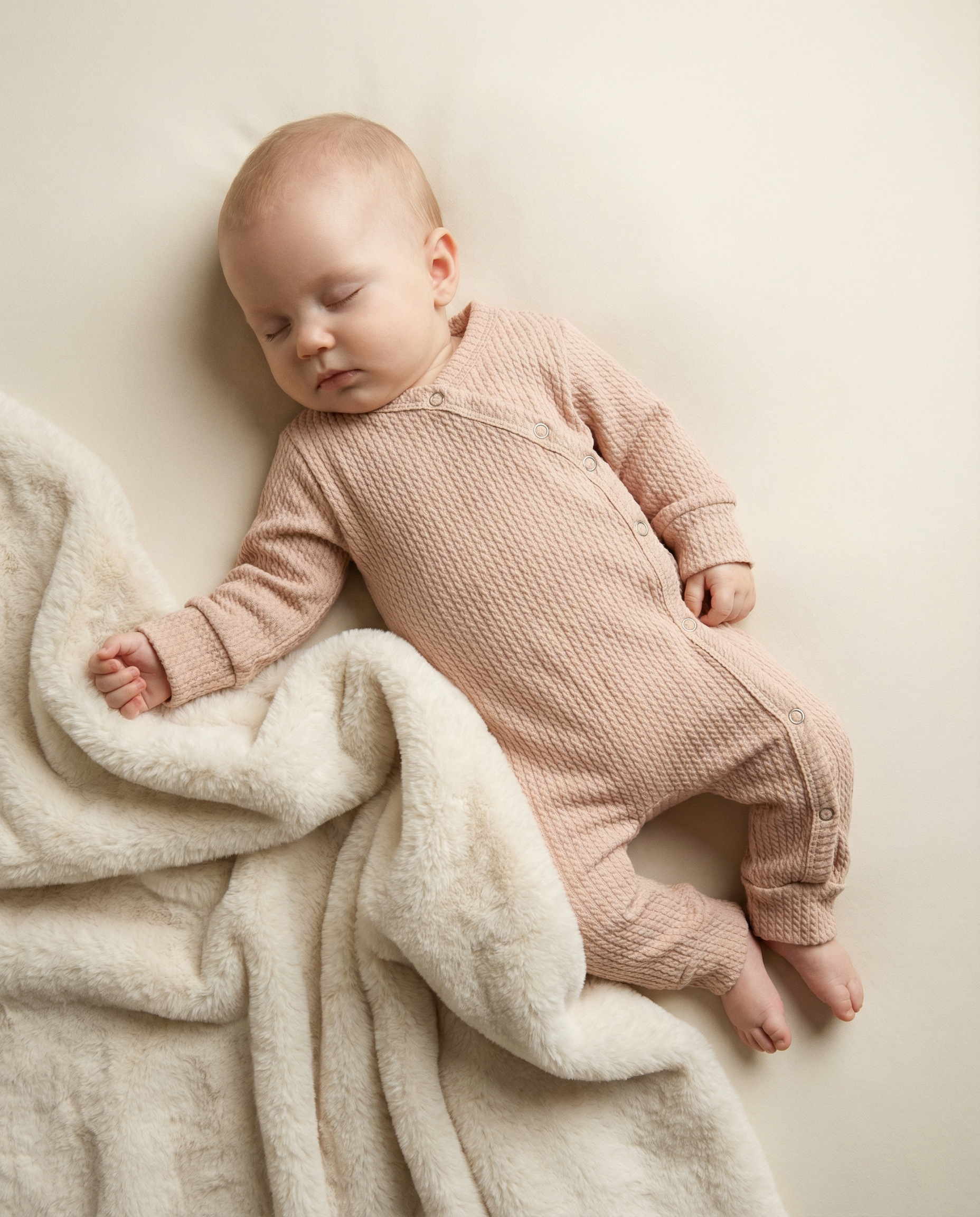 Rosafarbener Strampler mit Zopfmuster
