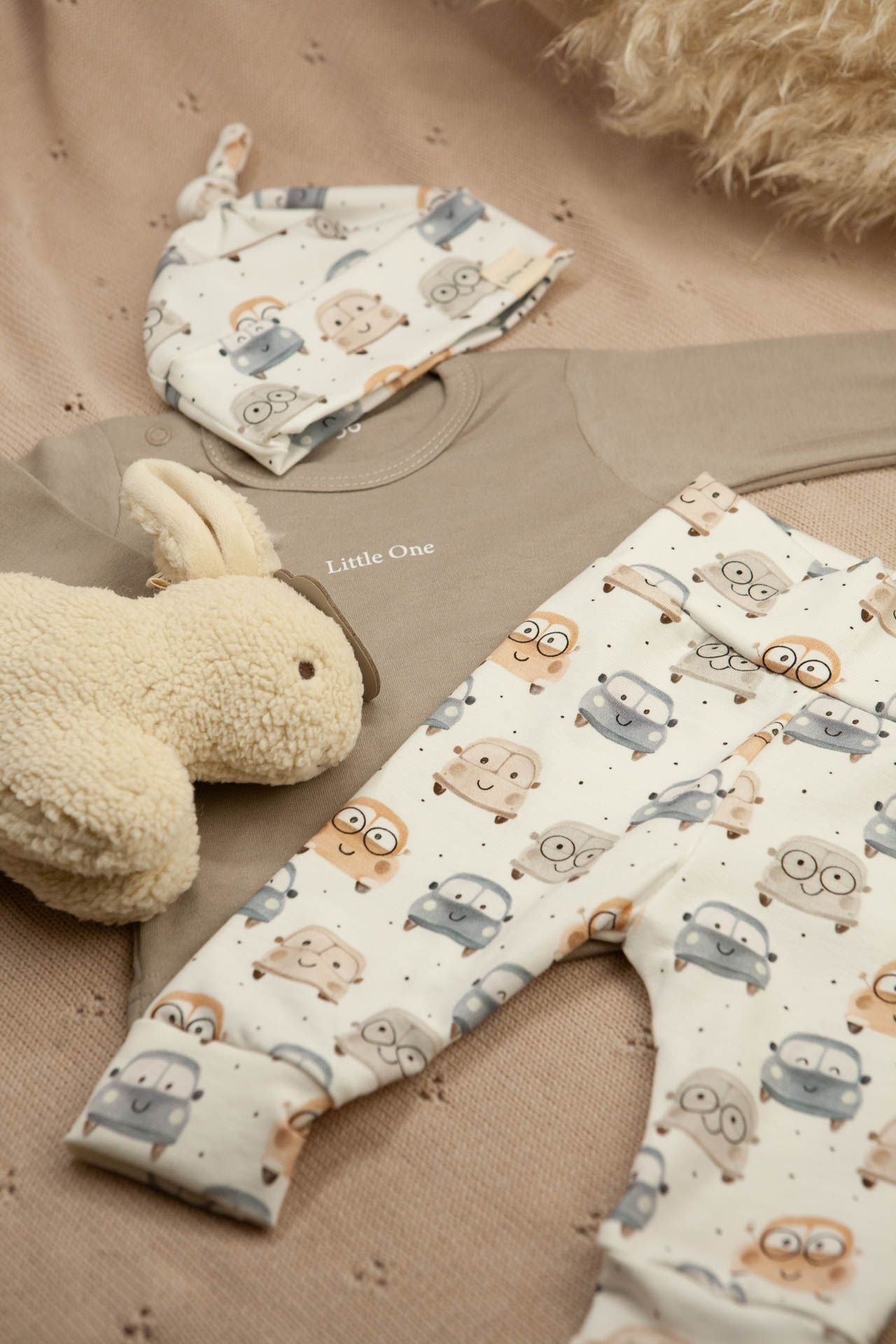Een prachtig begin vraagt om een bijzonder setje. Deze liefdevol samengestelde set is perfect als eerste pakje of om cadeau te doen aan kersverse ouders. En zeg nu zelf: waar vind je nog een complete kledingcombinatie voor zo’n fijne prijs?