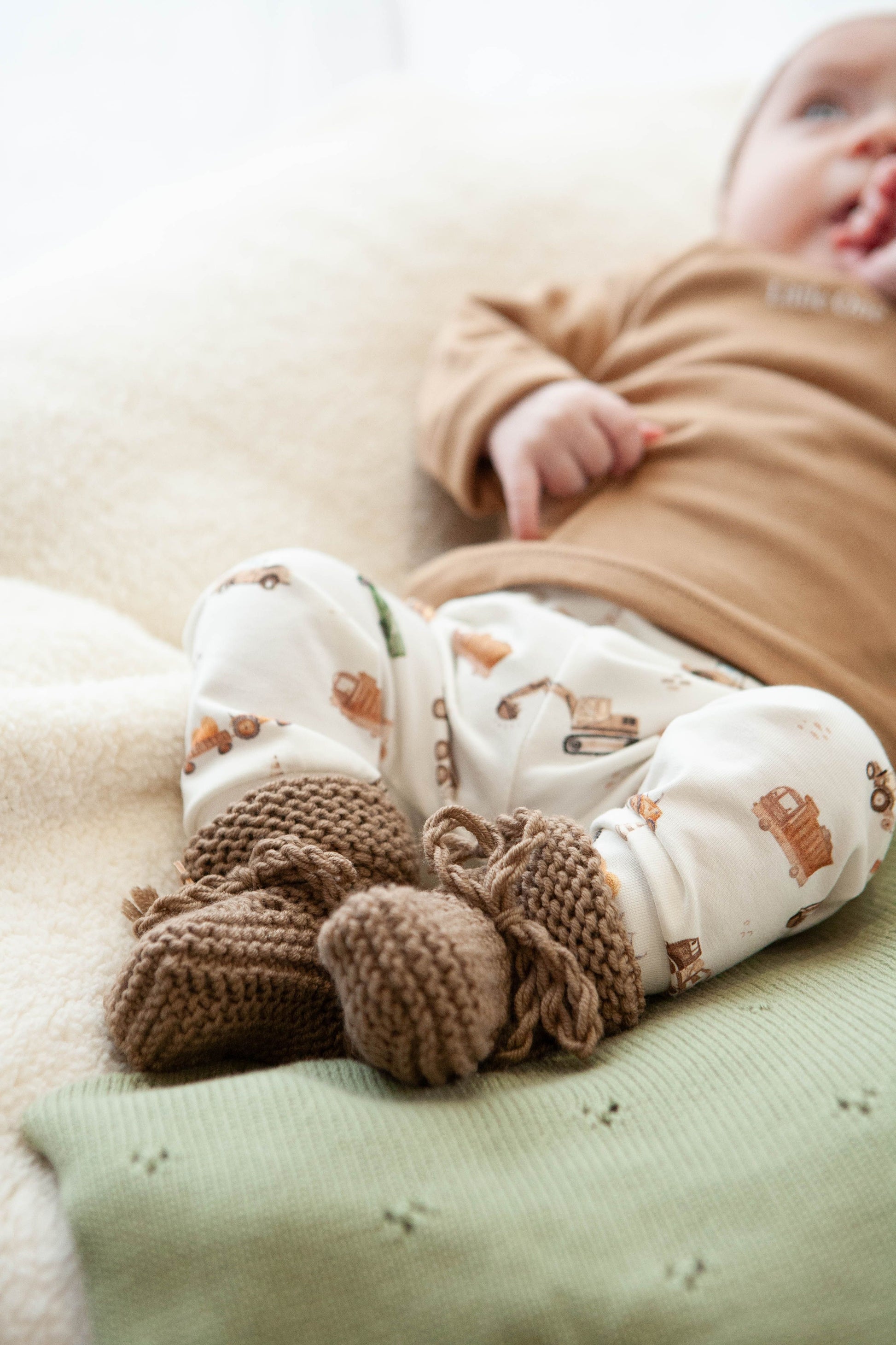 Dit zachte babybroekje is gemaakt van een rekbare, eco-gecertificeerde jersey stof die heerlijk aanvoelt op de huid. Het bovenboord bestaat uit een dubbele laag stof β zonder harde elastiekrand, maar met een zachte en comfortabele aansluiting boven de luier. Precies zoals je dat wilt voor een pasgeboren baby.